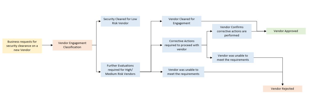 - Contractual Compliance: Ensuring that the vendor meets all contractual requirements is crucial. If the vendor fails to meet certain criteria, they may need to implement corrective actions or might not qualify for further engagement. Once all requirements are met, the vendor is added to the approved vendor list and scheduled for periodic assessments.